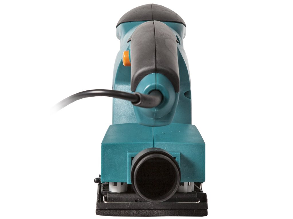 Motor s výkonem 150 W zajišťuje až 10 000 vibrací za minutu; brusný papír je bezpečně upevněn pomocí svorky.