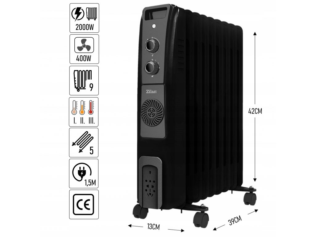 Výkonné olejový ohřívač Zilan je ideálním řešením pro chladné večery! Rychlý provoz, kompaktní tvar, estetika a vysoká mobilita jsou nejdůležitějšími vlastnostmi výrobku.