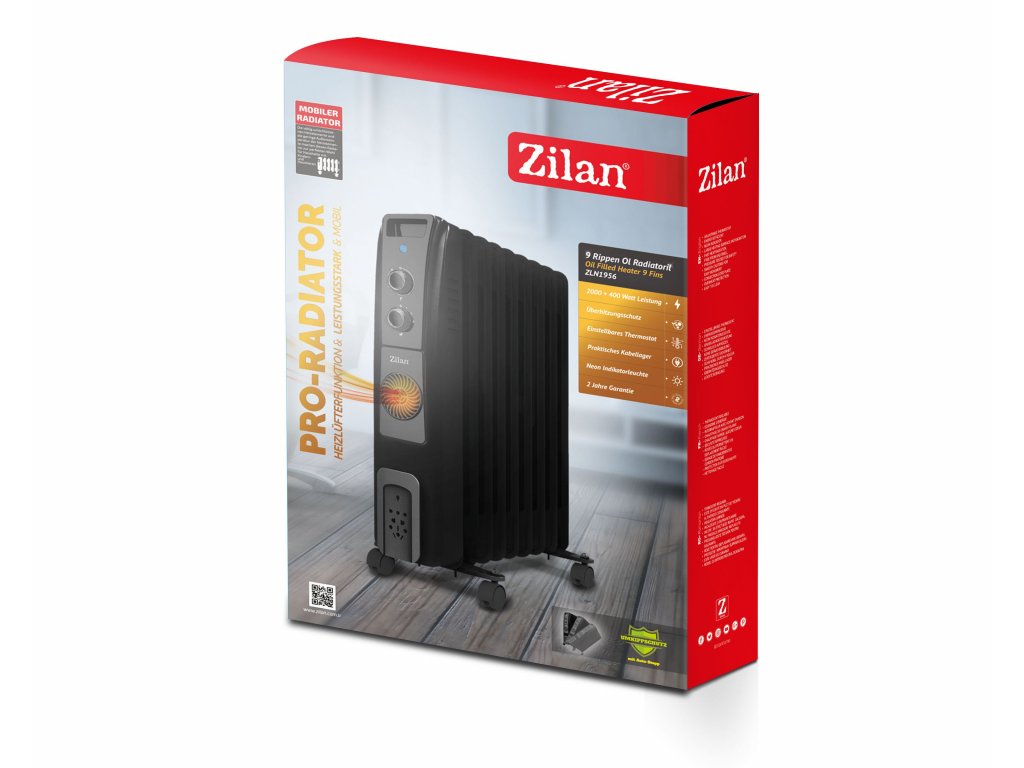 Elektrický olejový ohřívač Zilan ZLN1956 s 9 žebry, 2400W. Ideální pro místnosti o rozloze 20-25 m2.