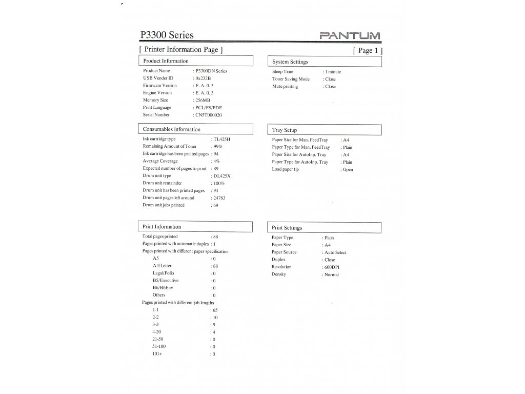 | Standardní kapacita toneru: | TL-425H(3000 stran) |